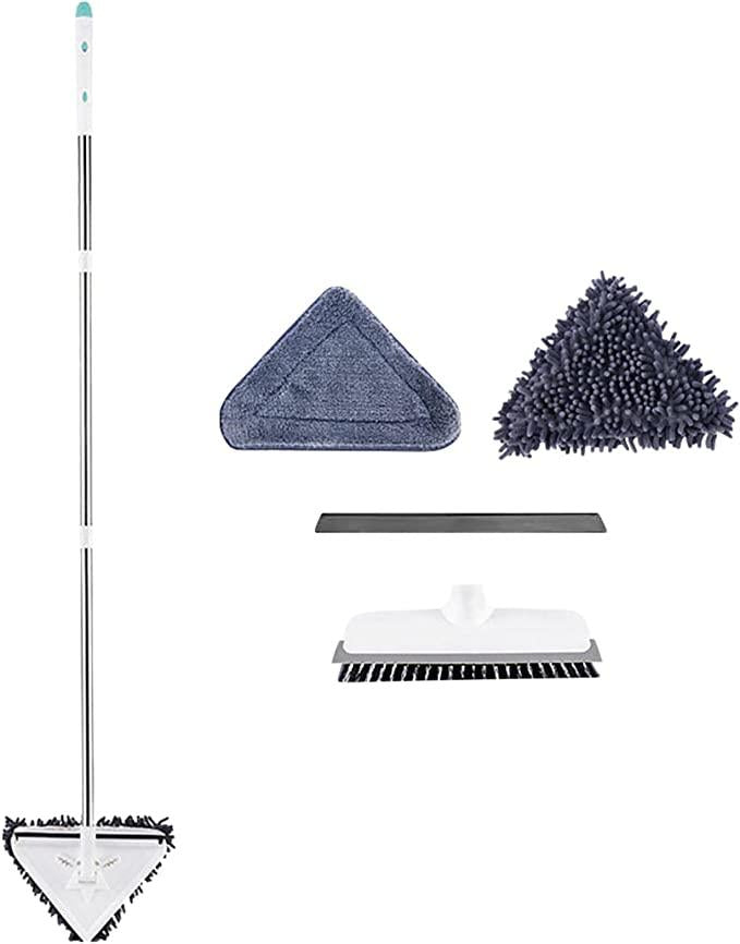 360 degree rotatable: triangular cleaning mop has a triangular design and the mop head can be rotated 360 degrees. This means that every corner can be easily cleaned without leaving any dead.
