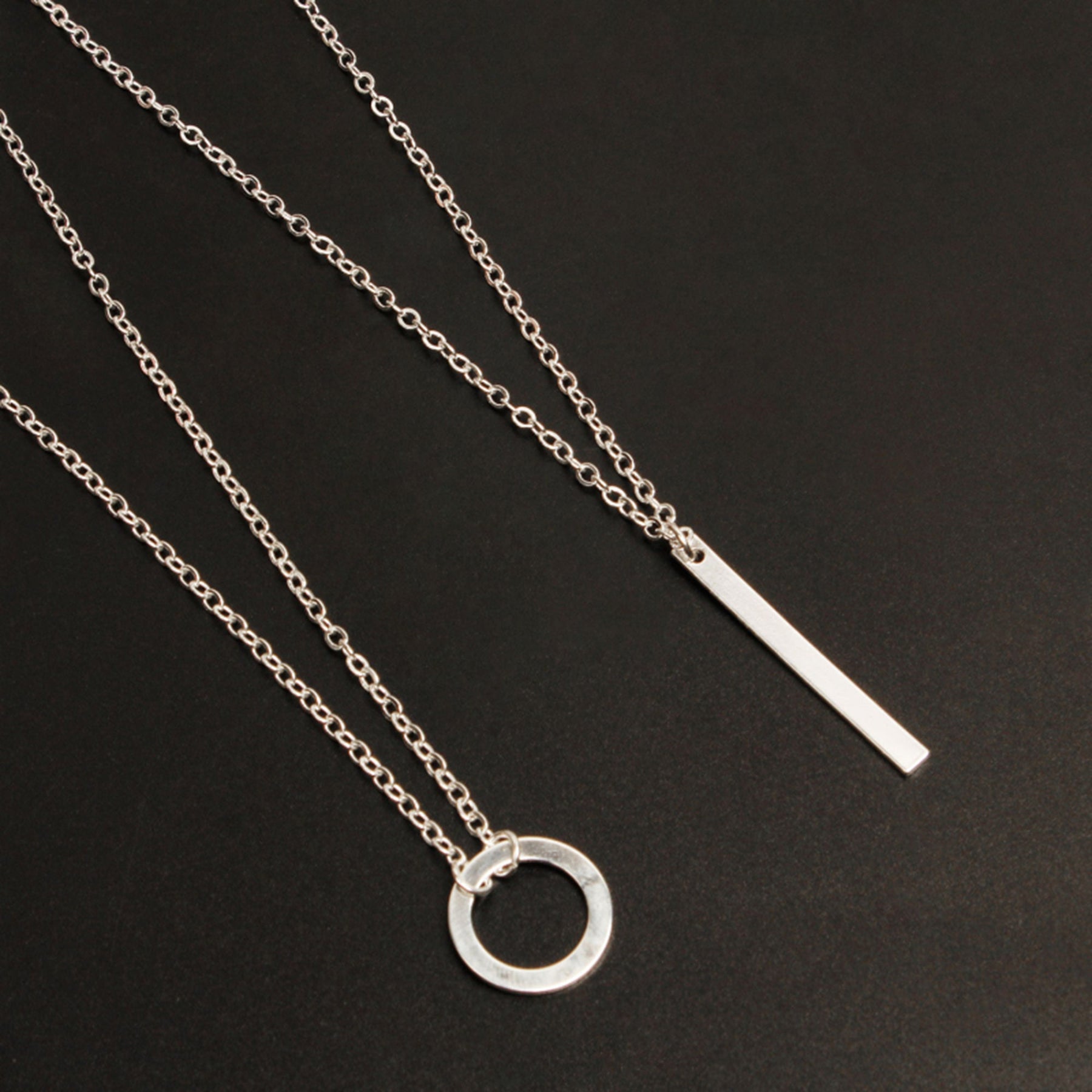 Silver Layered Chain Bar Pendant Necklace for Girls & Women